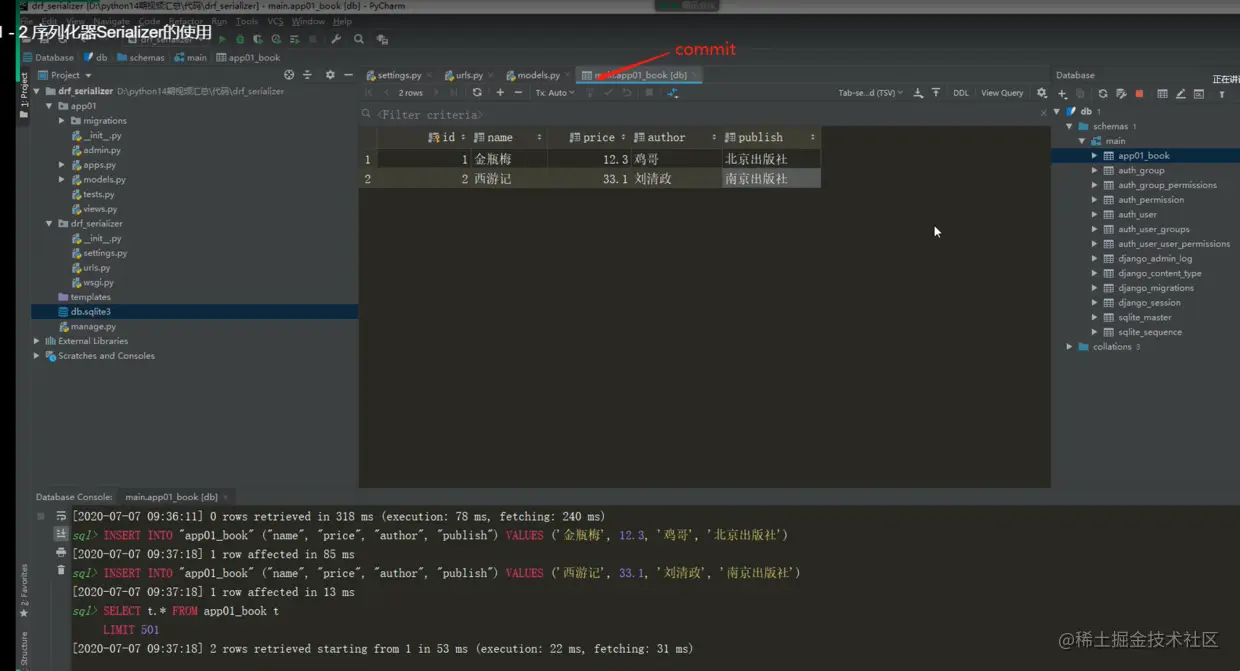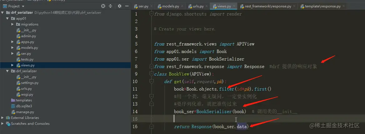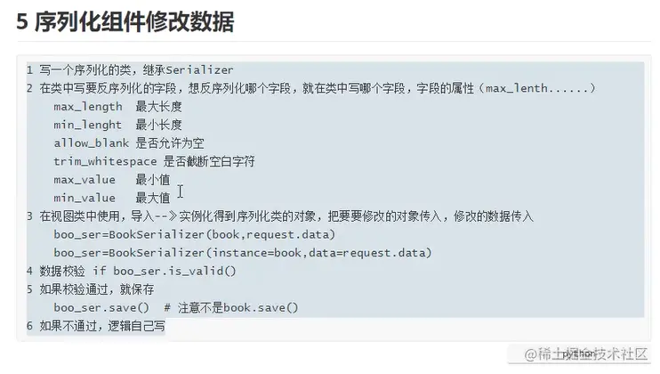 # book_ser=BookSerializer(books,many=True) #序列化多条,如果序列化一条,不需要写