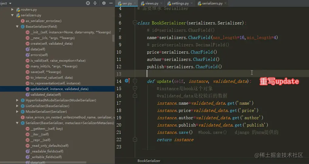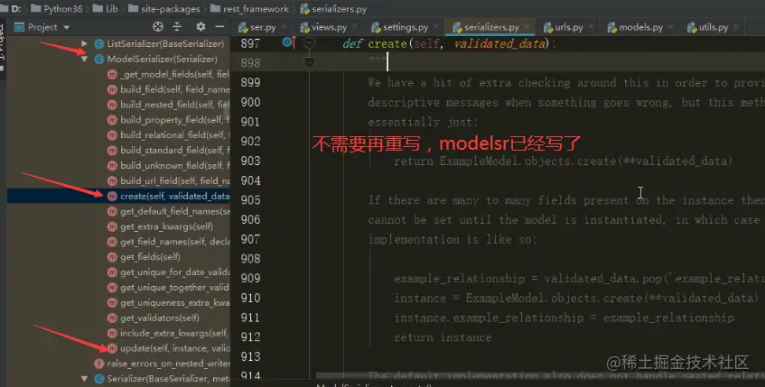 - 对应上models.py中的模型,不需重写update和create