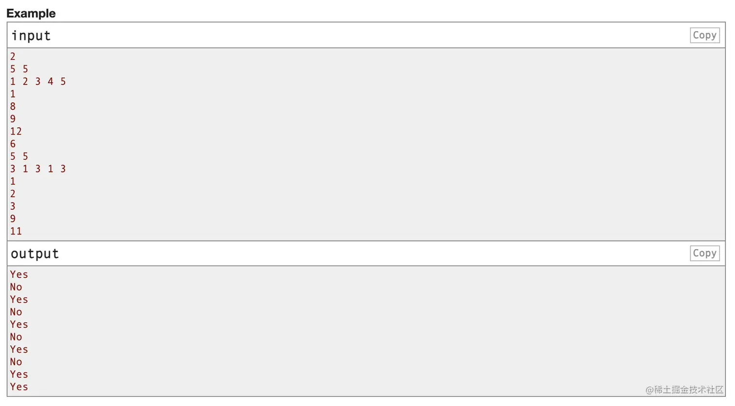 对于每一个请求我们输出Yes或No表示是否可以达成。