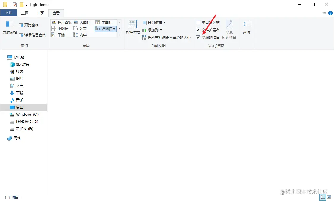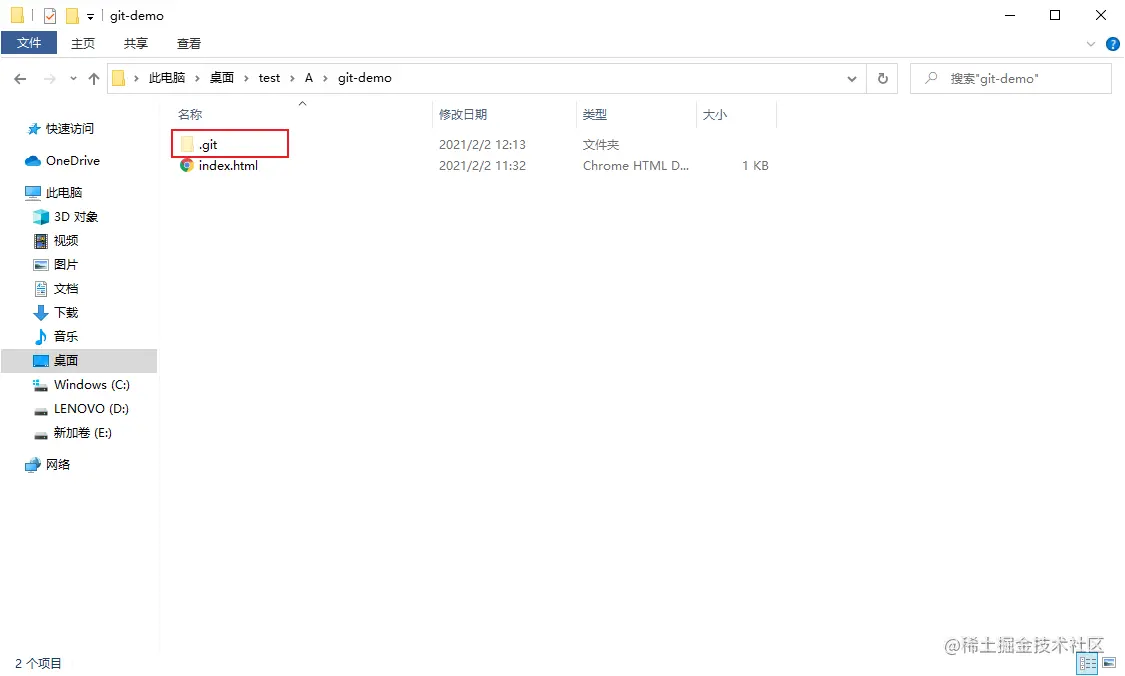 .git 文件夹 证明初始化仓库成功 呈现半透明状态