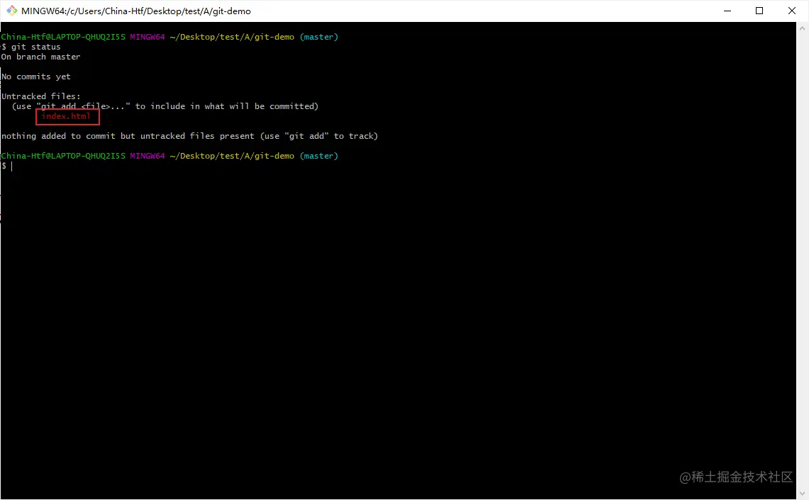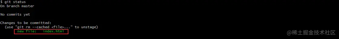 此时查看git仓库状态 该文件变成绿色 说明目前操作没有任何问题