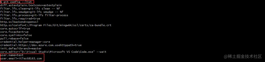 查看git配置信息:git config --list