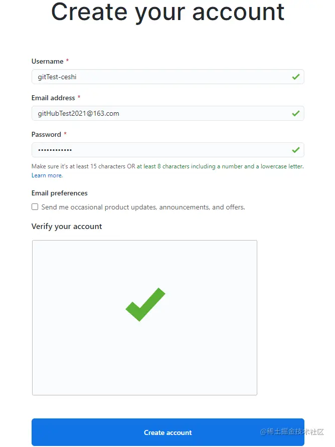 1.2 填写用户名、邮箱地址、GitHub登陆密码