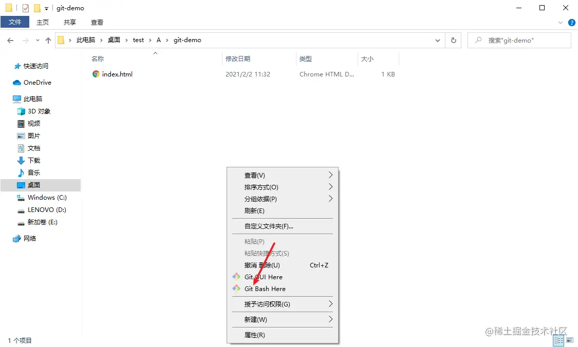 2.在根目录右键,启动Git Bash Here