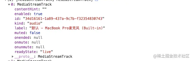 - readyState: 枚举值, "live"表示输入设备正常连接,"ended"表示没有更多的数据
