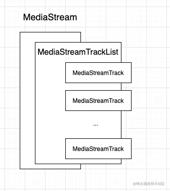 - 返回的stream表示媒体流,内部可以包括多个媒体轨道track,比如视频轨和音频轨。stream和track的关系如下图所示: