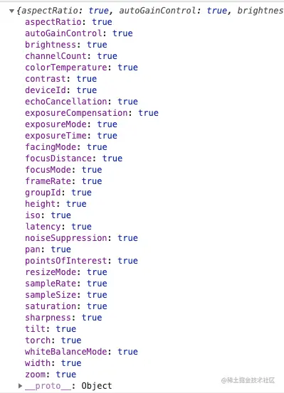 - getSupportedConstraints: 返回一个输入设备可支持的约束属性