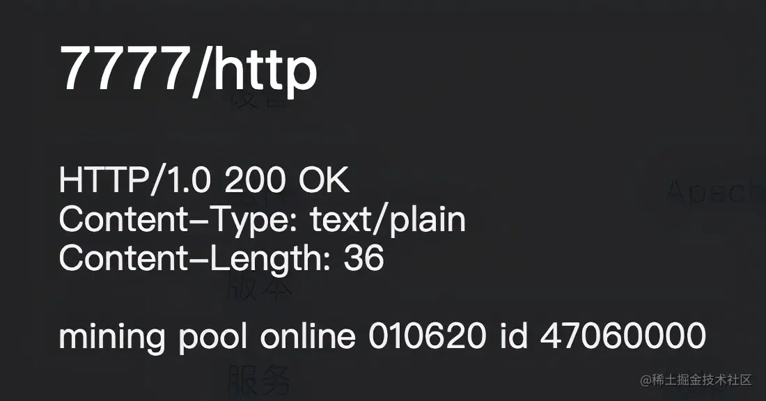 其中这位朋友服务器上发现的连接到的是7777端口,钟馗之眼显示,这是一个HTTP服务的端口,直接访问返回的信息如下: