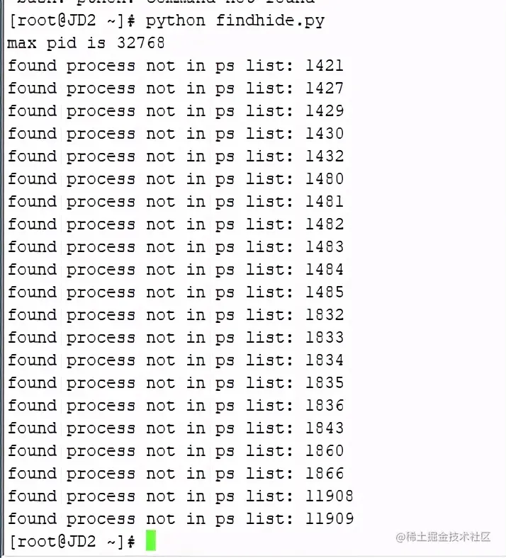 按照这个思路,我编写了一个Python脚本发给这位朋友,执行后果然发现了隐藏的进程: