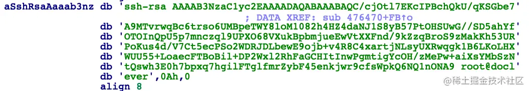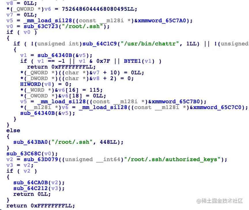 脱壳后,在IDA中现出了原形,不禁倒吸了一口凉气,居然悄悄修改/root/.ssh/authorized_keys文件,添加了RSA密钥登录方式,留下这么一个后门,随时都能远程登录进来。