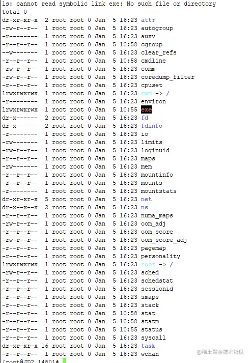 还记得前面通过netstat命令看到挖矿进程建立了一个网络连接吗?Linux一切皆文件,在 /proc/pid/fd 目录下有进程打开的文件信息: