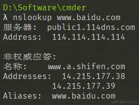- 在命令控制台使用nslookup命令,nslookup一个域名,可以得到对应的IP;