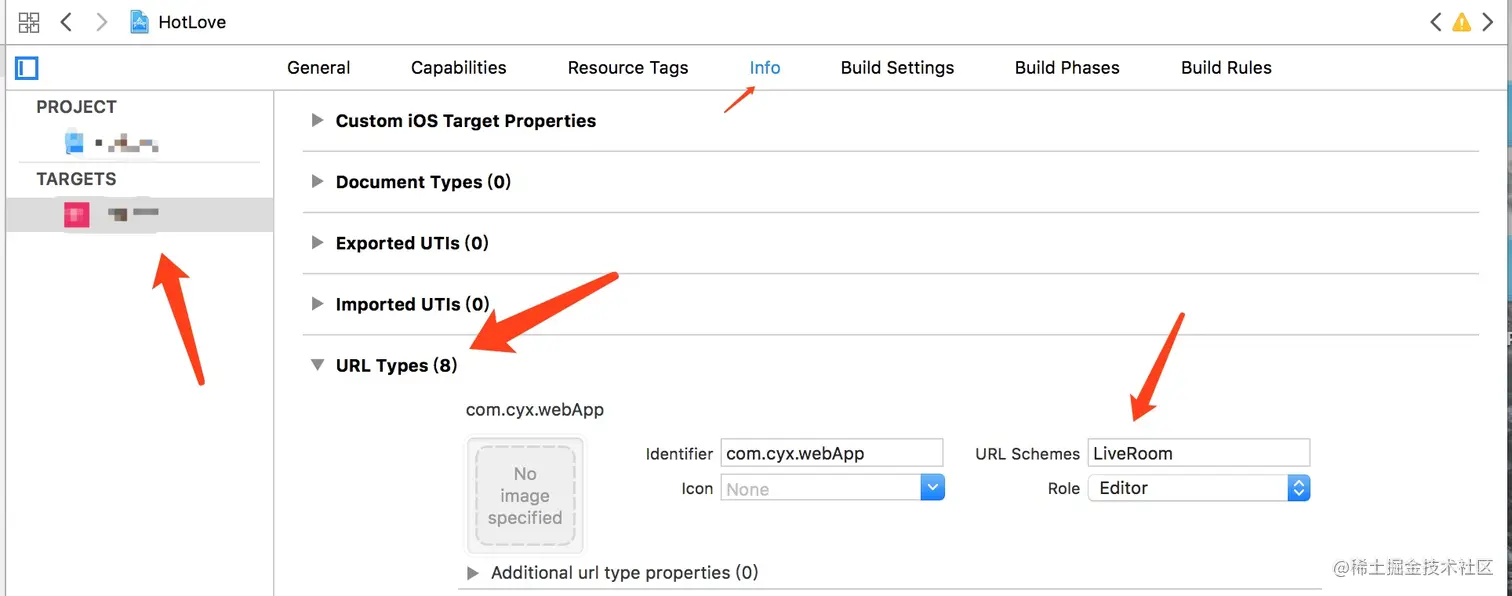 URL Scheme:这个 LiveRoom 名称可以自己随便起,但要保证跟 Xcode 里面 URL Scheme 保持一致(后面会讲解 Xcode 中的配置)。
