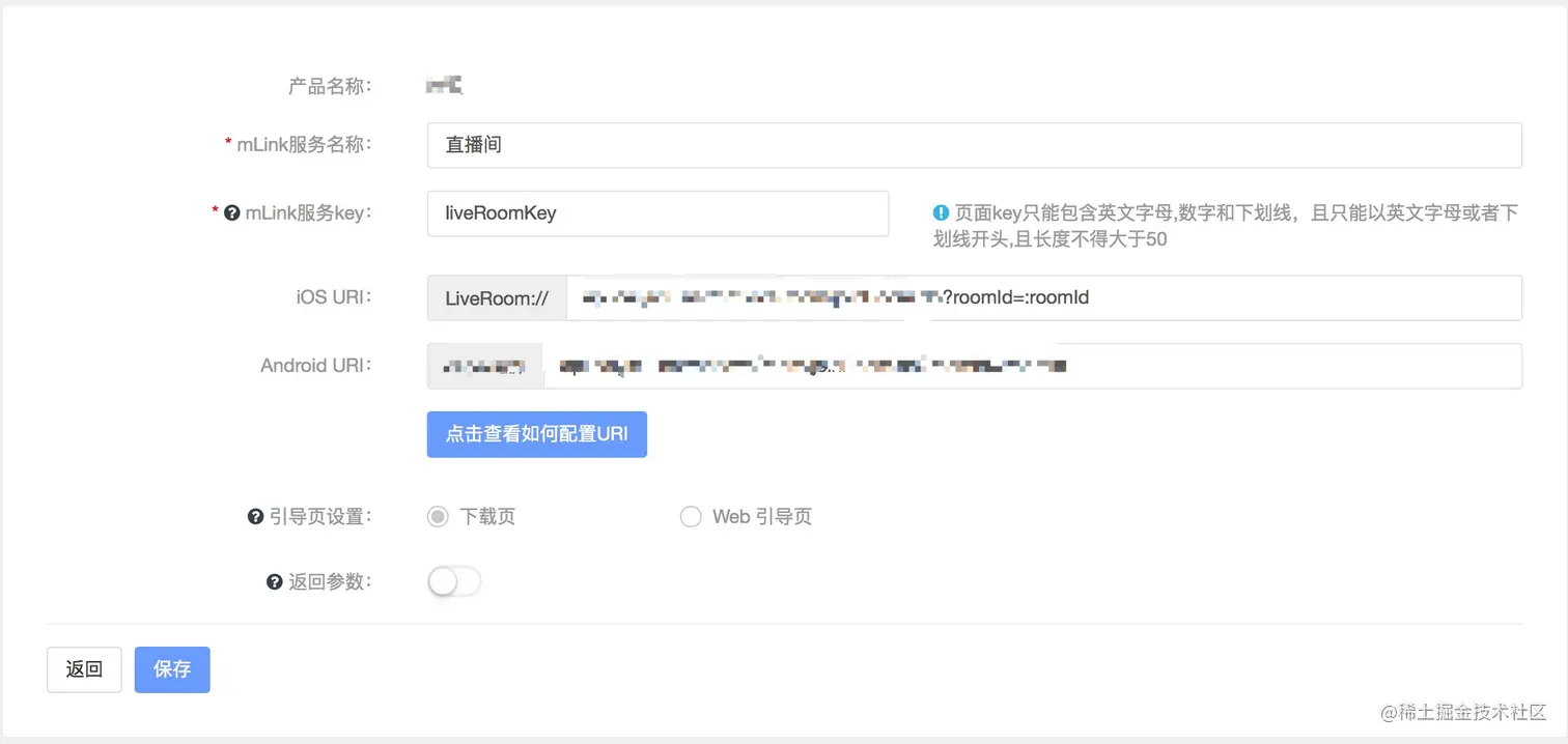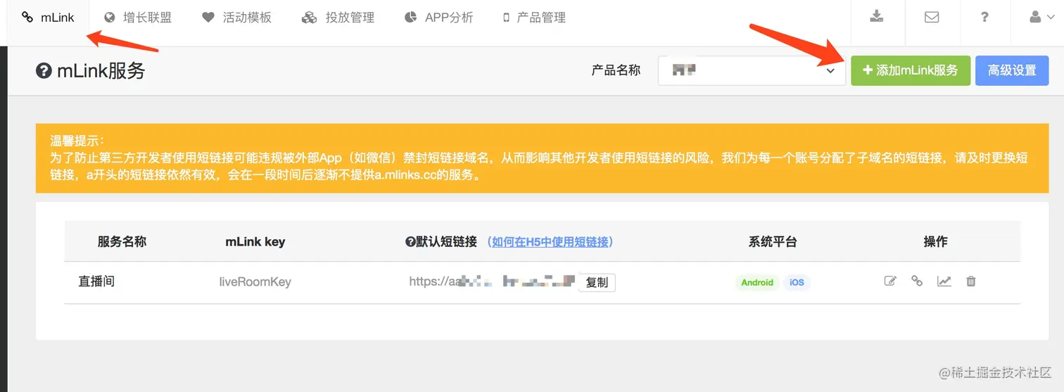 ④想要使用深度链接,还需要配置魔窗的 mlink 服务,如下图