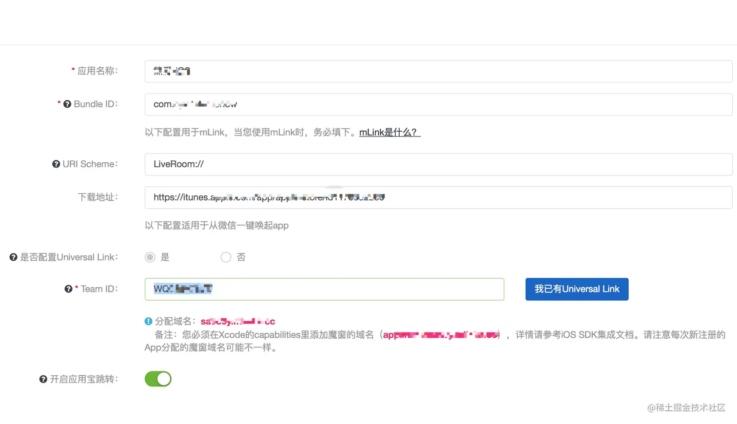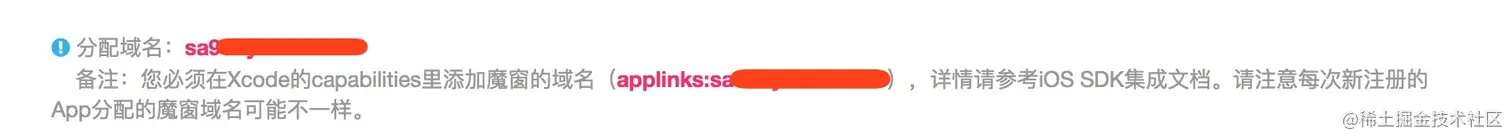 将这些都填写完毕后,魔窗会给你分配一个域名,这个域名会在后面 Xcode 中配置使用到。