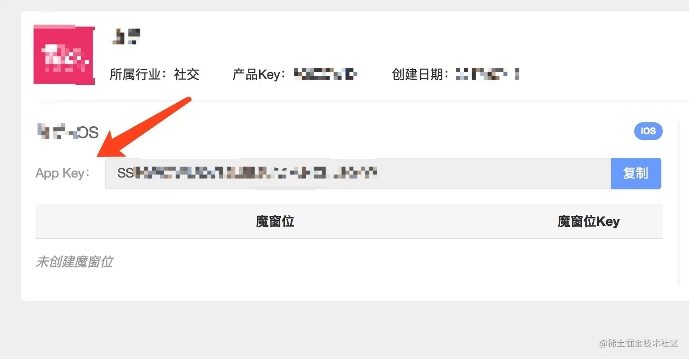 魔窗位信息无视,下一步,然后注册完毕后,会得到一个 App key,这个是魔窗 App key