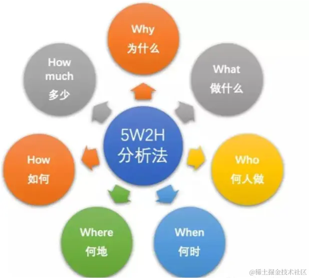 就是用5个W和2个H开头的英文单词来思考问题,很好理解,适用于解决简单的问题,而面对复杂的商业问题时就需要其他的方法辅助了。
