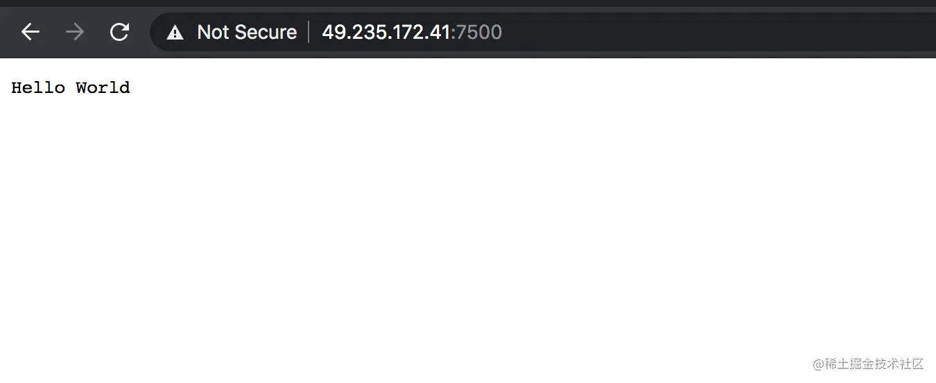 在上面的代码中我们创建了一个node项目,主机名0.0.0.0,端口7500,启动了一个http服务,当访问这个主机的时候返回'hello world'。