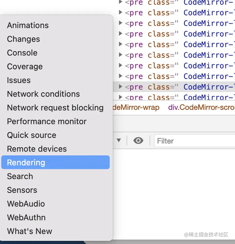 在更新样式的时候,会省略 Layout 或 Paint 这些步骤,可以通过 Chrome 中的开发者工具里的 Rendering 中添加 Paint flashing。通过高亮显示来突显重绘区域。