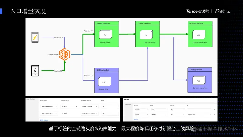 这里还有微服务网关组件和TSF Mesh支持协议转换,HTTP转gRPC和Dubbo协议转换,可以无缝对接多种协议应用,也节省了我们很多的改造和时间成本。