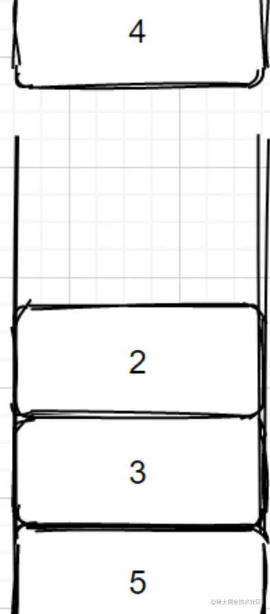 基本的栈的概念在这里就不细聊了,单调栈的含义就是栈内的元素是单调的(就是成正比或反比),下面的题目是递减栈,我们依次将元素压入栈,如果当前元素小于等于栈顶元素则入栈,如果大于栈顶元素则将栈顶不断出栈,直到当前元素小于或者等于栈顶元素为止,再将当前元素入栈。就比如下图的4,想入栈的话则需要2,3出栈之后才能入栈,因为4大于他俩。