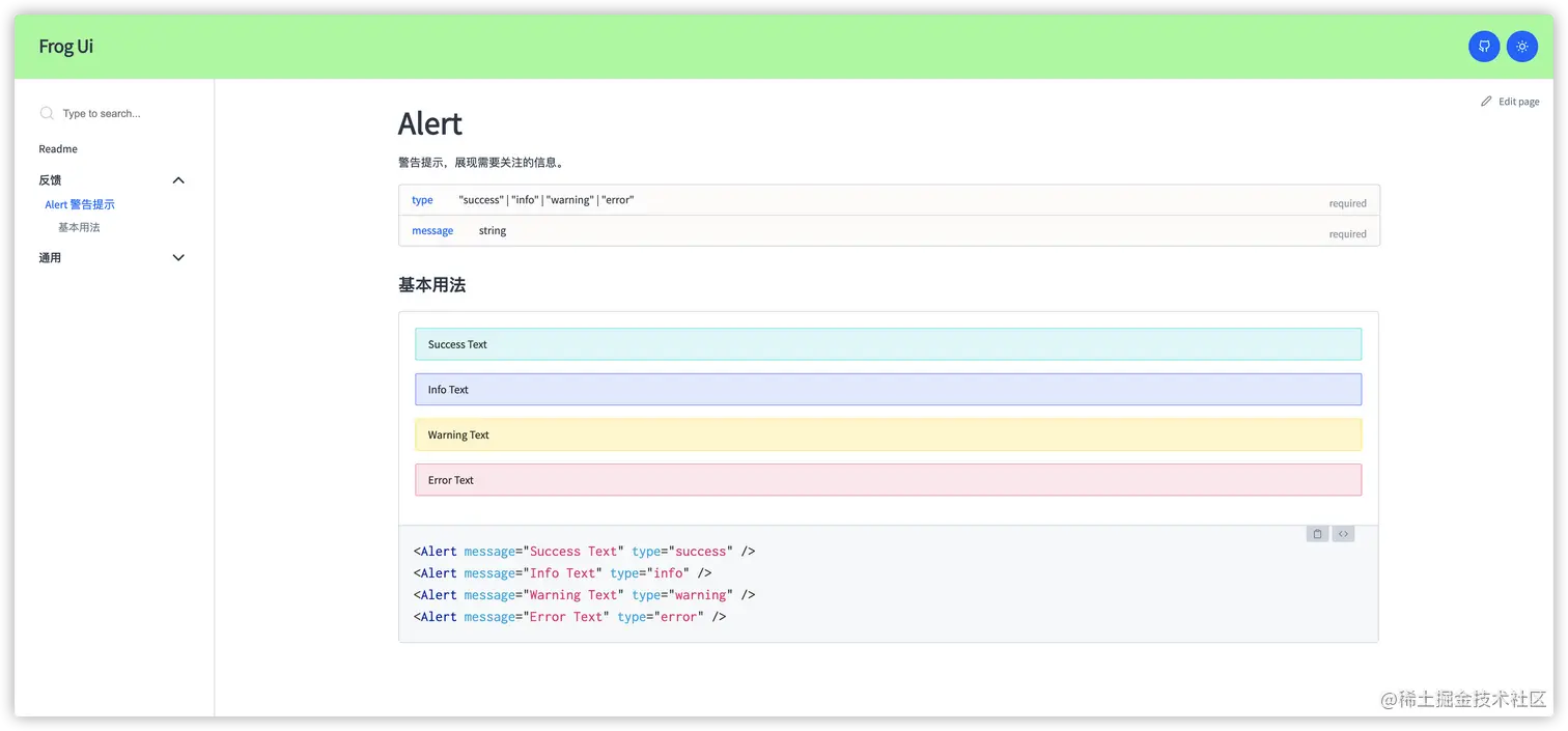 示例组件库线上站点: Frog-UI