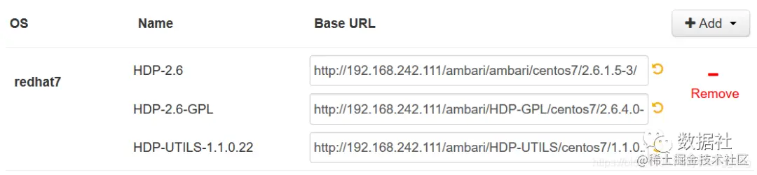 # 解压安装包cd /var/www/html/ambari/tar -zxvf ambari-2.6.1.5-centos7.tar.gz -C /var/www/html/ambaritar -zxvf HDP-2.6.4.0-centos7-rpm.tar.gz -C /var/www/html/ambarimkdir /var/www/html/ambari/HDP-UTILS/tar -zxvf HDP-UTILS-1.1.0.22-centos7.tar.gz /var/www/html/ambari/HDP-UTILS/# 解压后,需要删除目录下所有的html文件,不然后续会卡主,避免出错;cd /var/www/html/ambari/find . -name *.html# html文件集中在一个文件夹下;cd ./HDP/centos7/2.6.4.0-91/rm *.html# 解压后会在文件夹最底层内生成ambari.repo和hdp.repo和hdp-utils.repo文件# 修改每个url后,拷贝到/etc/yum.repos.d/目录下,作为本地yum源;# ① 在 /etc/yum.repos.d文件夹内修改ambari.repo,确保能够http访问baseurl;cat ambari.repo # 内容如下#VERSION_NUMBER=2.6.1.5-3[ambari-2.6.1.5]name=ambari Version - ambari-2.6.1.5baseurl=http://192.168.242.111/ambari/ambari/centos7/2.6.1.5-3/gpgcheck=1gpgkey=http://192.168.242.111/ambari/ambari/centos7/2.6.1.5-3/RPM-GPG-KEY/RPM-GPG-KEY-Jenkinsenabled=1priority=1# ② 在 /etc/yum.repos.d文件夹内修改hdp.repo,确保能够http访问baseurl;cat hdp.repo # 内容如下#VERSION_NUMBER=2.6.4.0-91[HDP-2.6.4.0]name=HDP Version - HDP-2.6.4.0baseurl=http://192.168.242.111/ambari/HDP/centos7/2.6.4.0-91/gpgcheck=1gpgkey=http://192.168.242.111/ambari/HDP/centos7/2.6.4.0-91/RPM-GPG-KEY/RPM-GPG-KEY-Jenkinsenabled=1priority=1[HDP-UTILS-1.1.0.22]name=HDP-UTILS Version - HDP-UTILS-1.1.0.22baseurl=http://192.168.242.111/ambari/HDP-UTILS/centos7/1.1.0.22# baseurl=http://192.168.242.111/ambari/HDP-UTILSgpgcheck=1gpgkey=http://192.168.242.111/ambari/HDP-UTILS/centos7/1.1.0.22/RPM-GPG-KEY/RPM-GPG-KEY-Jenkins# gpgkey=http://192.168.242.111/ambari/HDP-UTILS/RPM-GPG-KEY/RPM-GPG-KEY-Jenkinsenabled=1priority=1