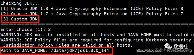 配置中会提示输入JAVA_HOME和ambari元数据库的登录密码: