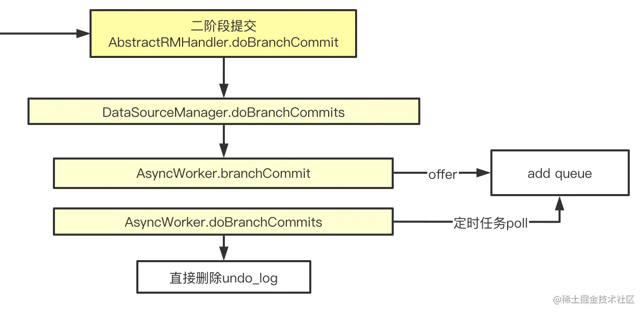 如上图,RM接收到二阶段提交请求后,只需要做一件事:删除undolog