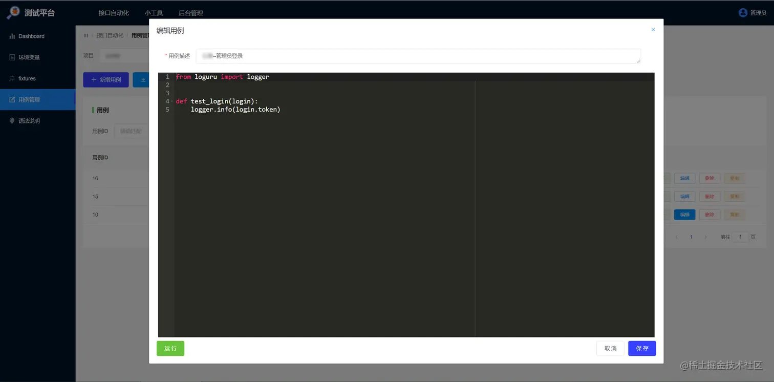 在前端网页写代码,1条用例对应1个pytest的test_name.py文件。比如调用login fixture登录: