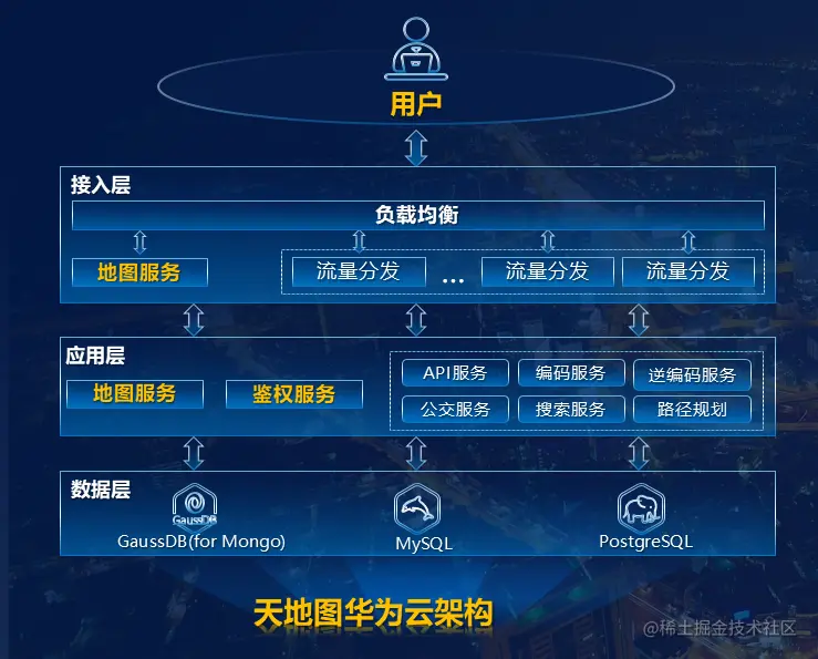 天地图业务数据复杂,数据种类多样,结合客户诉求和业务特点,华为云数据库采用公有云对外服务为主,私有云对内测试为辅的混合云架构,提供多种数据库引擎方案,联合打造高性能、高可用的数字底座。