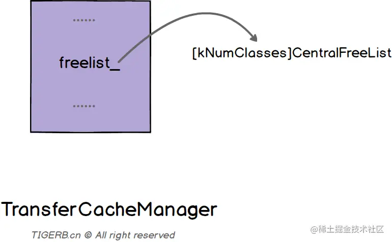 答案:就是`TransferCacheManager`这个结构里的`freelist_`属性。