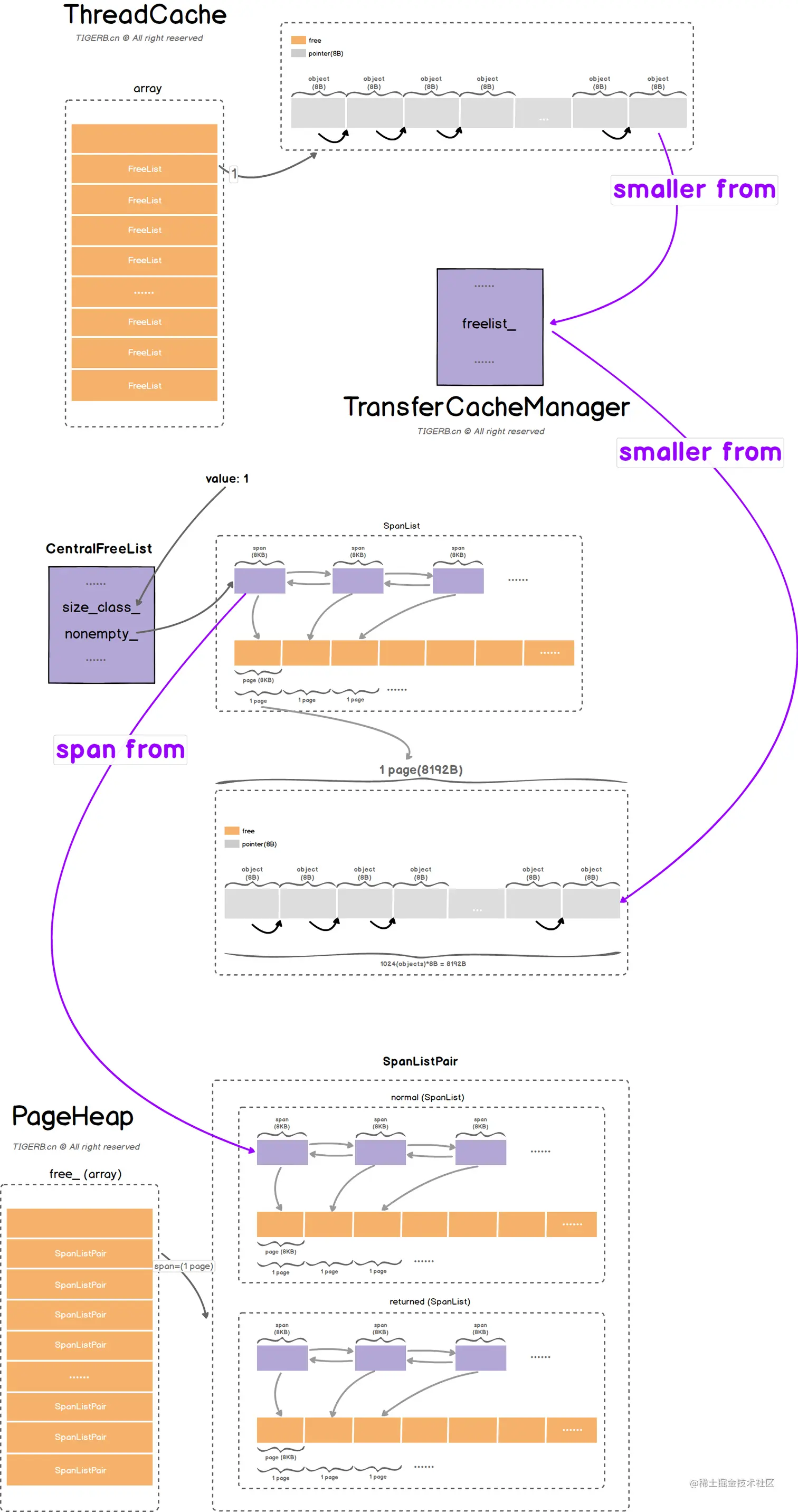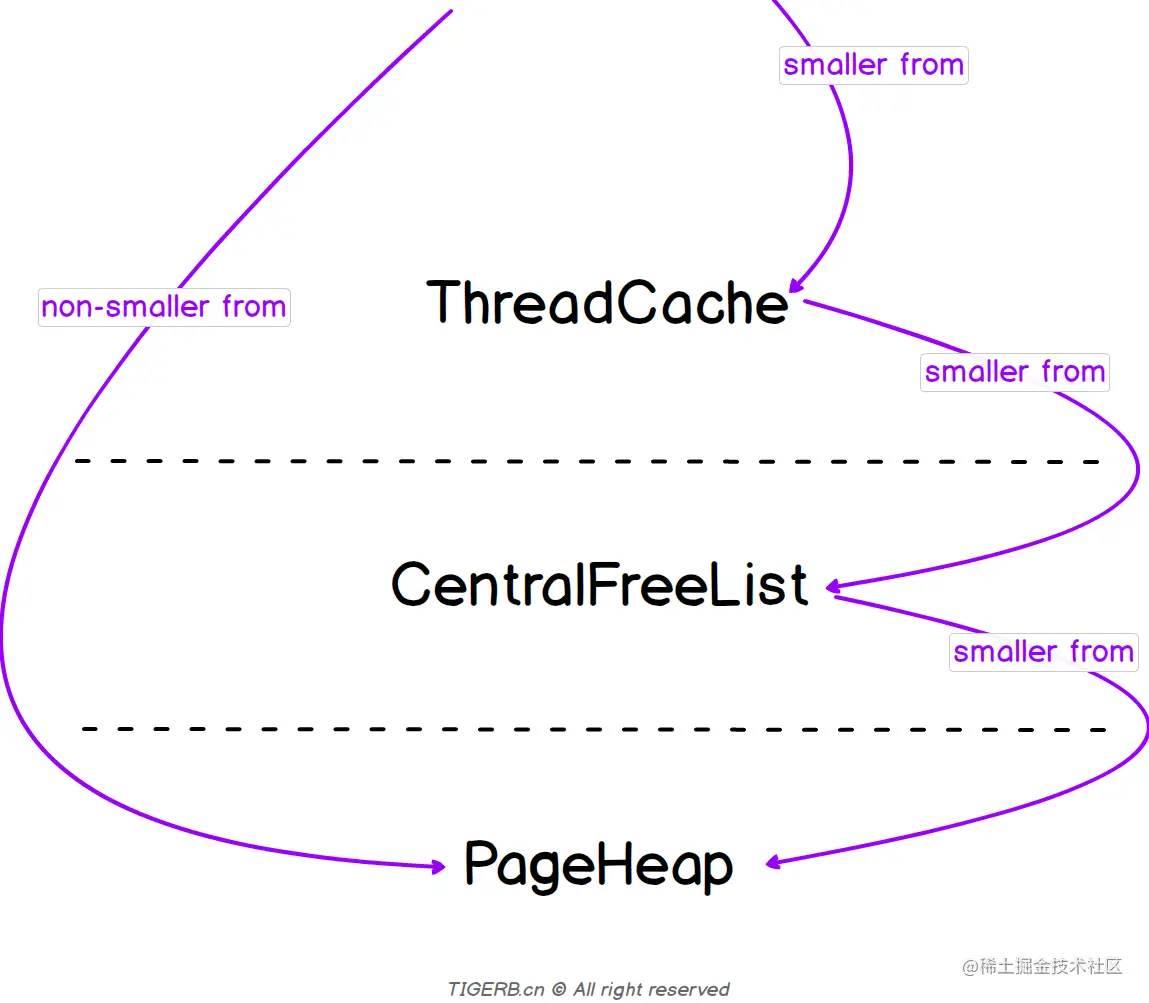 TCMalloc各个主要部分是基于这些基本概念组成的.