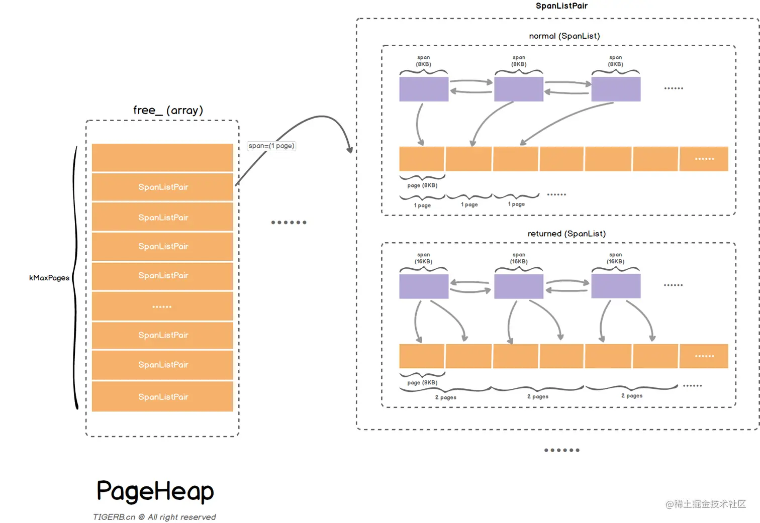 根据这个结论我们修正下PageHeap结构图,如下: