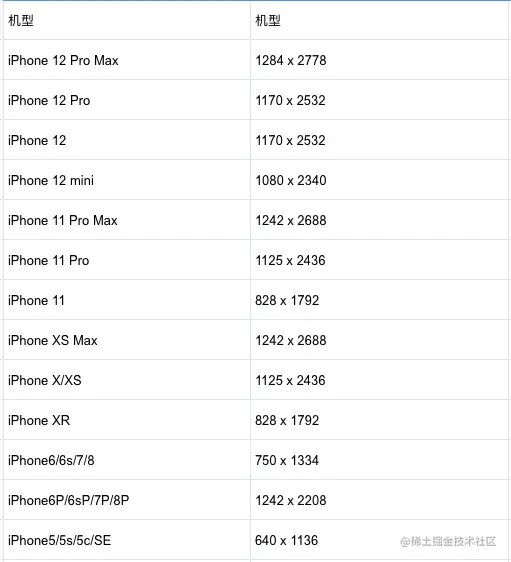 iPhone各机型屏幕尺寸