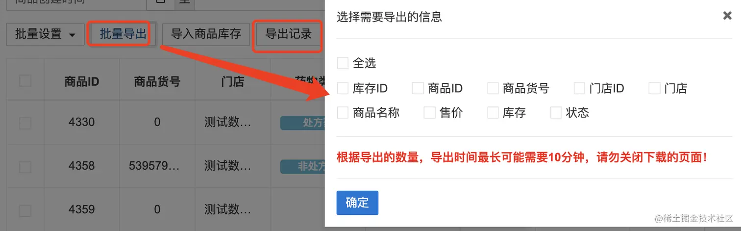 - 限制每次导出的最大数据条数,比如控制在1000条
