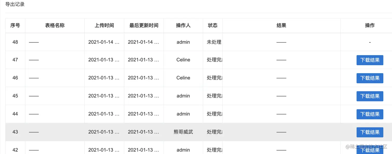 - 页面增加导出记录项,提供导出文件下载的入口展示