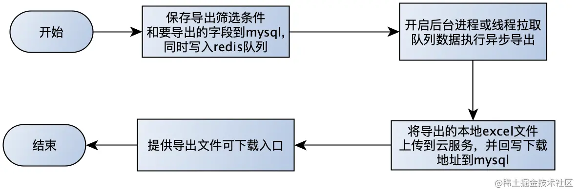 以上除了mysql + redis,然后定时脚本执行的方式外,当然了用MQ也是比较好的选择,直接将导出任务发送消息到MQ,由mq里做整个的异步导出处理