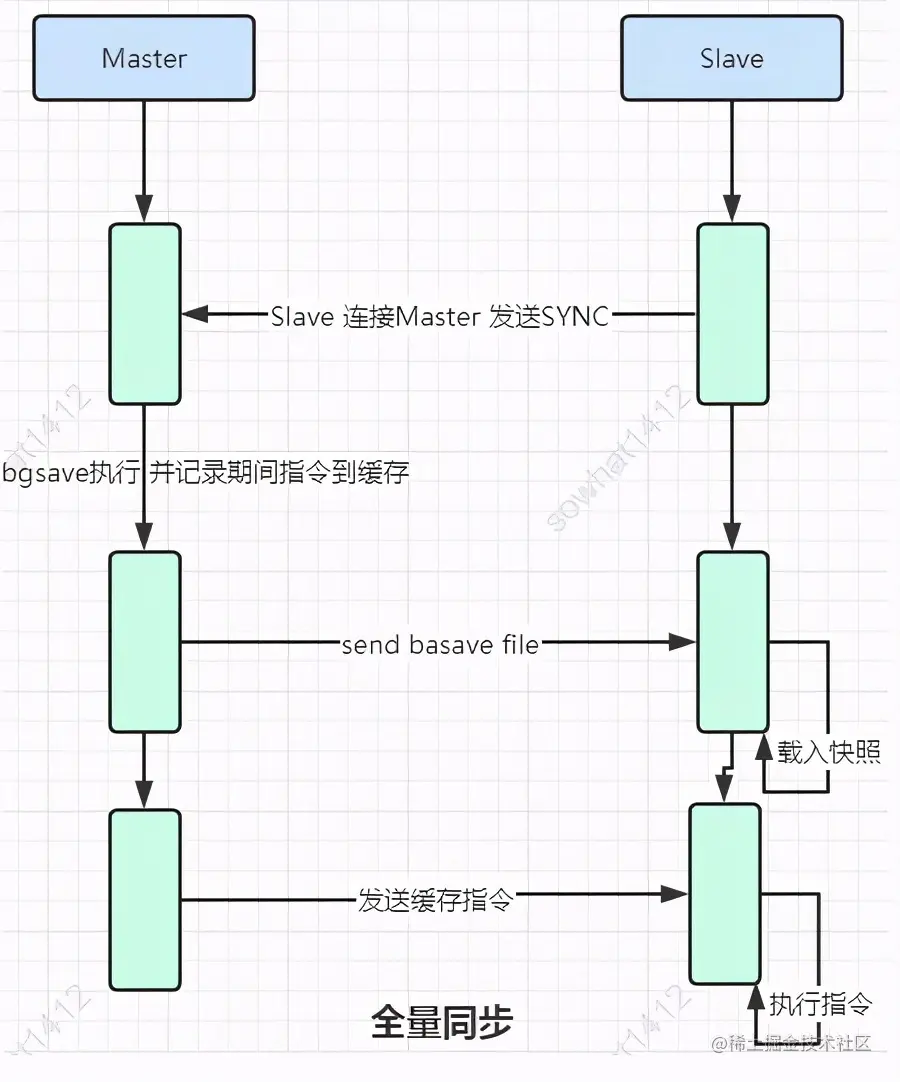 Redis全量复制一般发生在Slave初始化阶段,这时Slave需要将Master上的所有数据都复制一份: