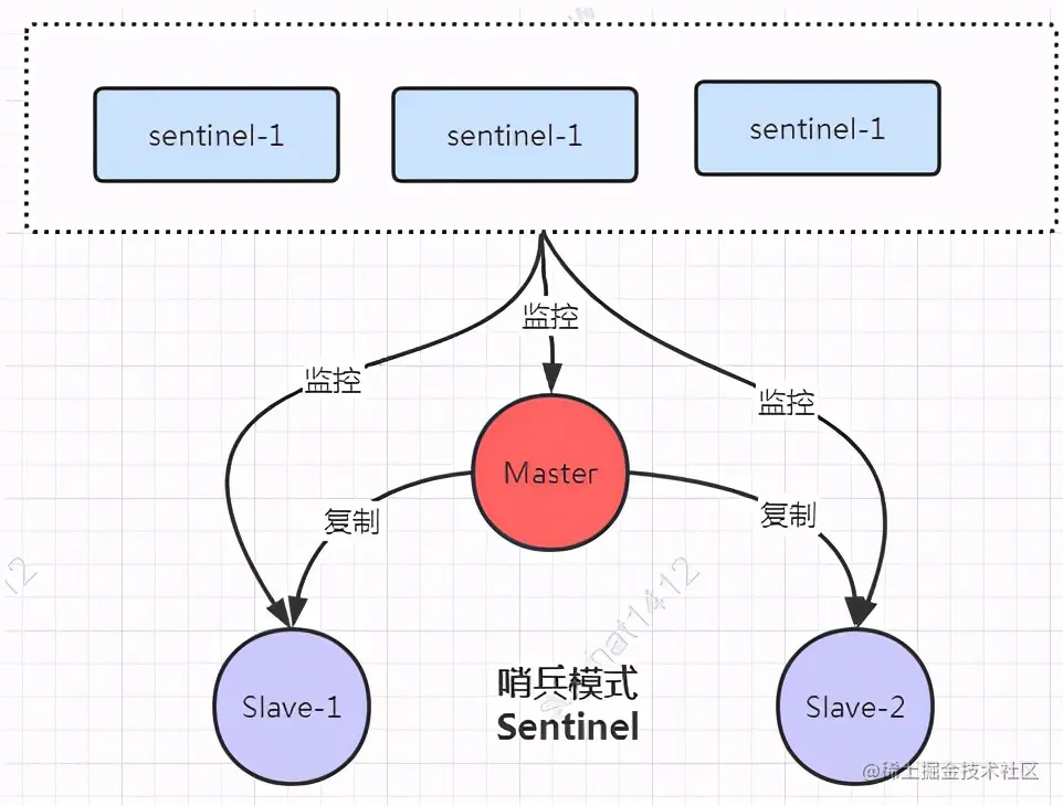 3、一般通过主从来实现读写分离,但是如果master挂掉后如何保证Redis的 HA呢?引入Sentinel进行master的选择。