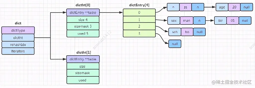 2、rehashidx 其实是一个标志量,如果为-1说明当前没有扩容,如果不为 -1 则记录扩容位置。