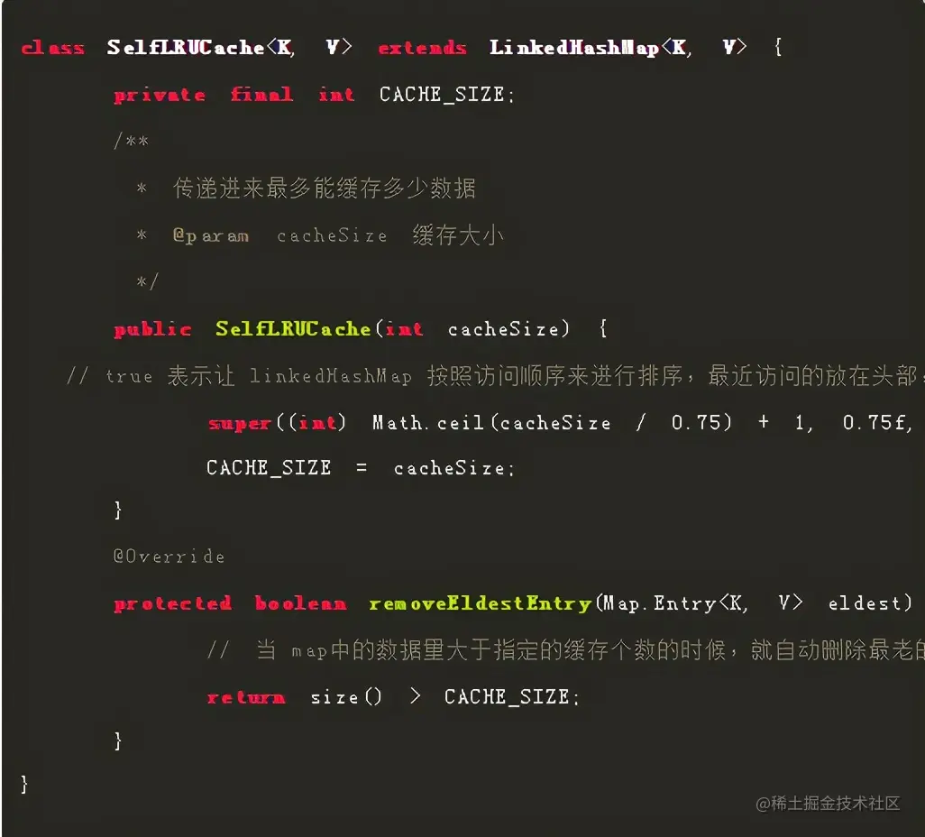 面试常问常考的也就是LRU了,大家熟悉的LinkedHashMap中也实现了LRU算法的,实现如下: