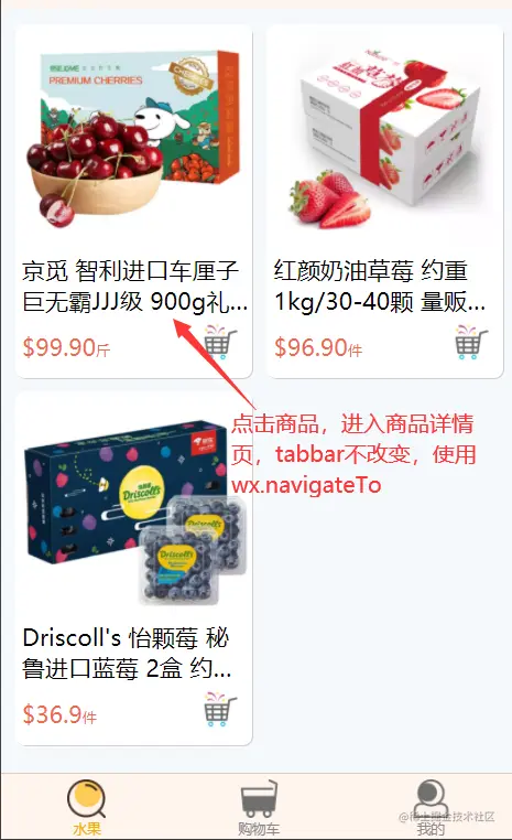 他们使用场景的区别:当要从首页跳转到点单页面,实现tabBar页面的跳转,没有值的传递,使用wx.switchTab。当在商品页面需要点击进入商品的详情时,这时候有值的传递,则使用 wx.navigateTo。