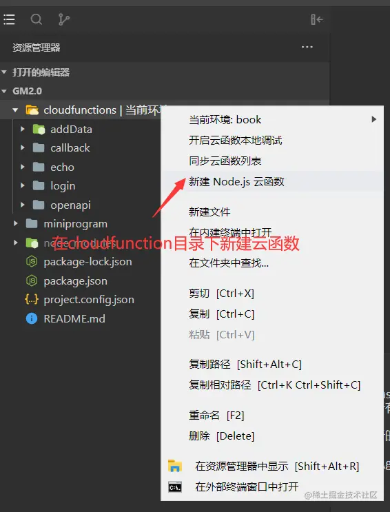 - 在云函数方法 addData中的index.js 进行初始化