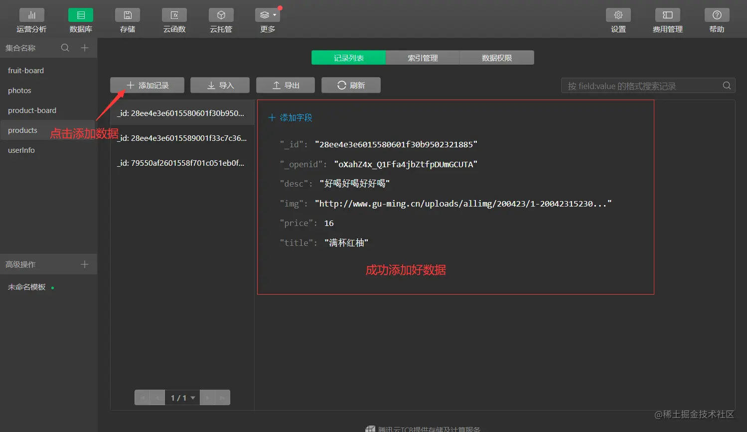 - 添加云函数方法 addData