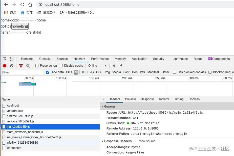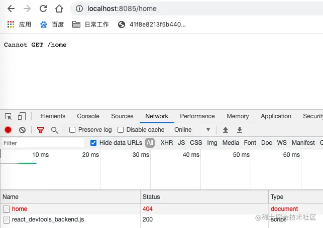 history模式下: http://localhost:8085/home/js/main.1f305855.js (找的是相对路径)