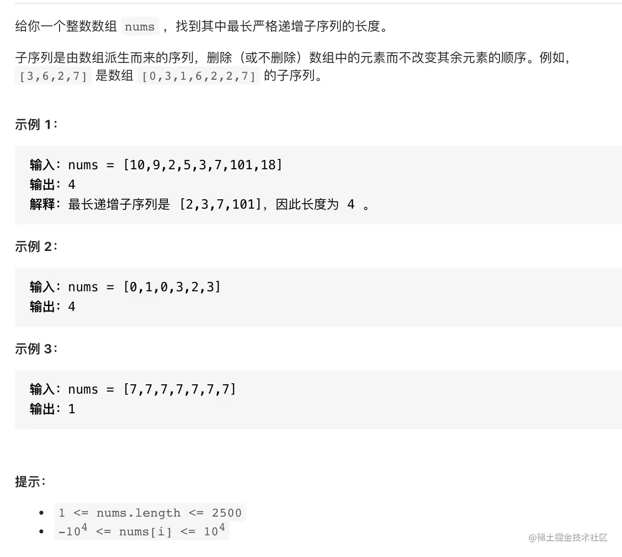 int [] nums = new int[]{10, 9, 2, 5, 3, 7, 101, 18};