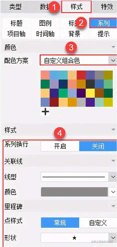 1)选择样式>系列,系列换行选择关闭,如下图所示: