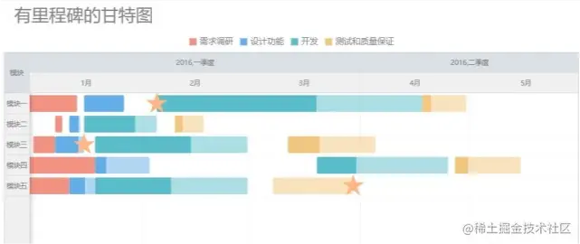 当然这是最简单形式的甘特图,除此之外还有里程碑式甘特图: