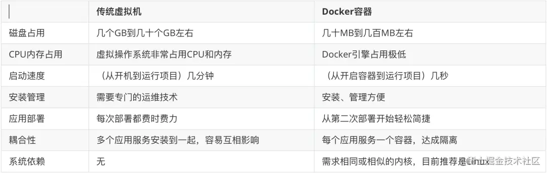 首先我们来看一张虚拟机技术和Docker容器技术的对比图